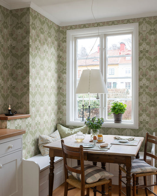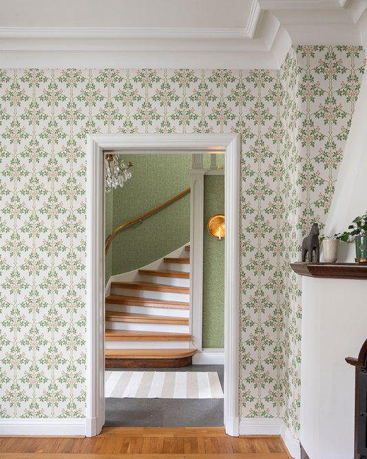 Oxford Union Wallpaper - Green / Apricot - Sample