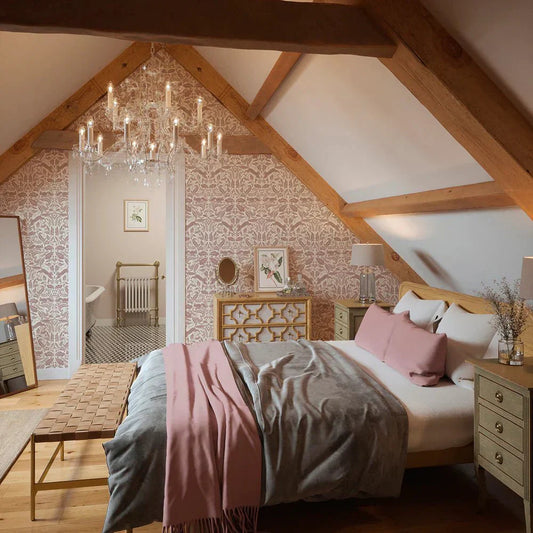 William Morris wallpaper is renowned for its intricate designs and rich patterns that reflect the Arts and Crafts movement's emphasis on nature and craftsmanship. Morris's wallpapers often feature floral and botanical motifs, with designs like "Willow Bough," characterized by delicate branches, and "Strawberry Thief," which depicts birds among lush strawberries. The color palettes range from soft, muted tones to deep, vibrant hues, allowing for versatile applications in various interior styles